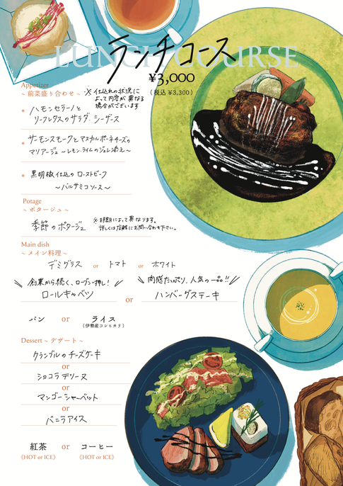 LUNCH. 11:30 – 14:30(L.O.14:00)