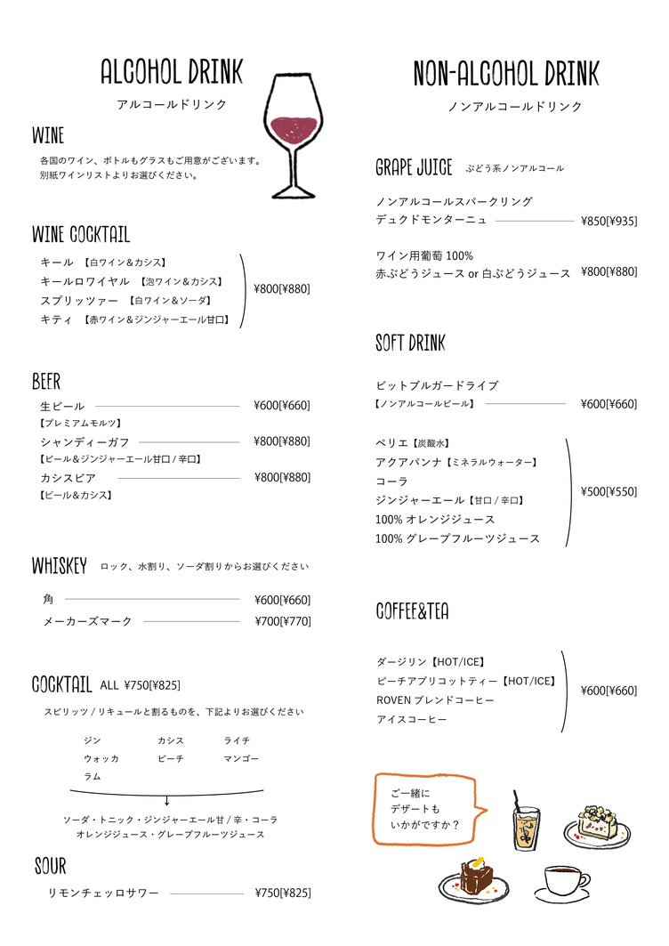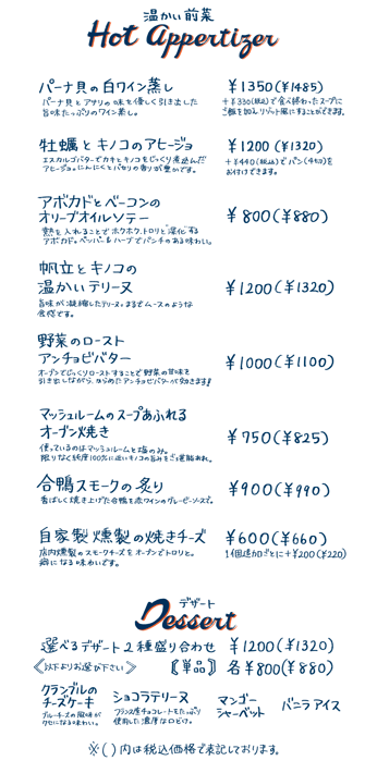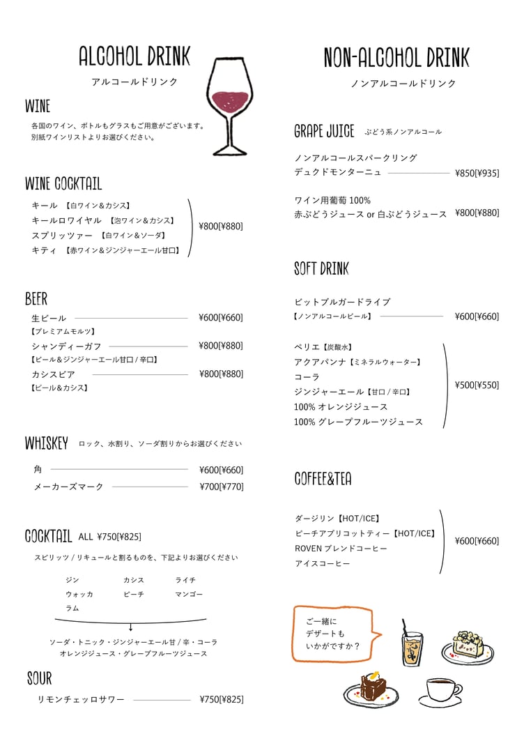 Whether you come alone or with friends, please enjoy a pleasant time in our warm space where conversation flows naturally over a glass of wine.