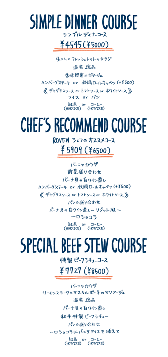 DINNER.17:30 – 22:00(L.O.21:30)