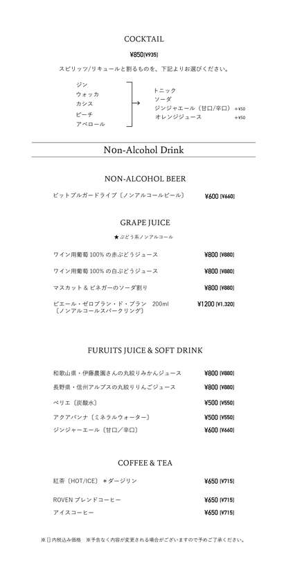 ※その他メニュー・コース内容につきましては食べログもしくはInstagramをご参照ください。