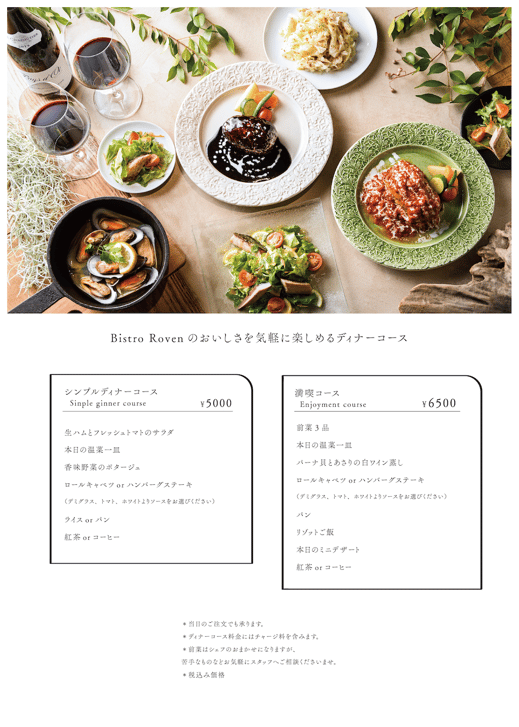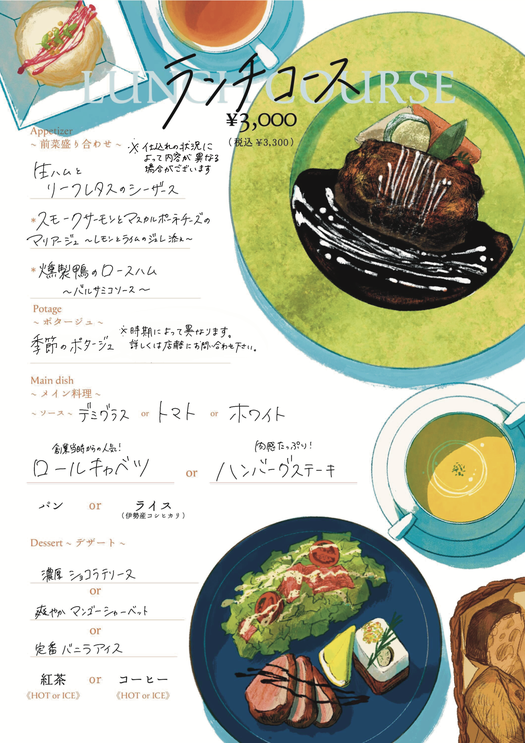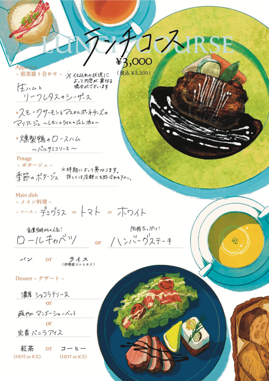 ※休日(土日祝日含む)はランチコースのみの営業となります